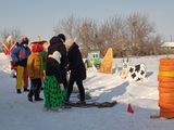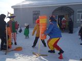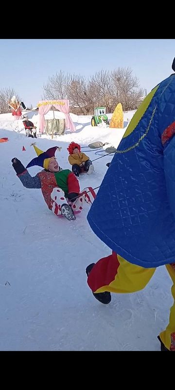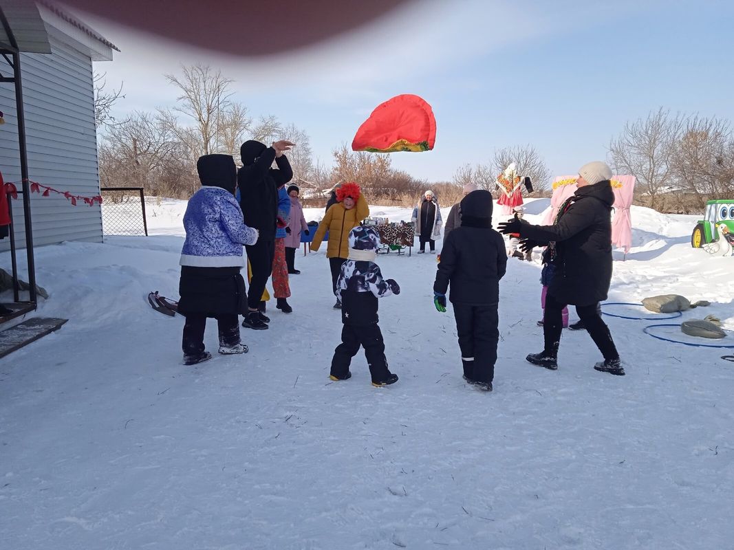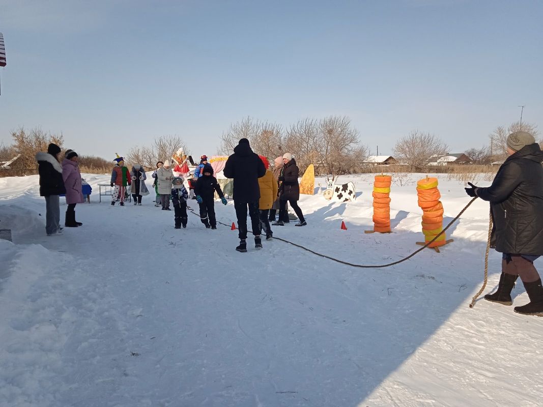 На просторной площадке перед клубом развернулось эпицентр масленичных забав, где каждый мог найти себе развлечение по душе. Веселые хороводы кружились под музыку, а состязания в силе и ловкости вызывали азарт у участников. Дети с восторгом скользили с ледянок, смело вступали в бой мешками и с упорством перетягивали канат. Меткость проверялась в игре "попади в мишень", а игры на ловкость и быстроту заставляли участников демонстрировать чудеса реакции. И, конечно же, какое масленичное гулянье без поедания блинов! Юные гости с аппетитом уплетали румяные угощения, а взрослые с радостью поддерживали их аплодисментами, разделяя общий восторг.